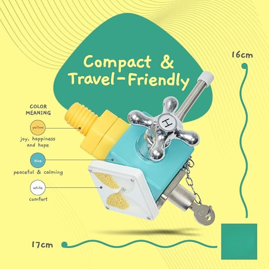 Each cube is packed with carefully selected activities that stimulate tactile, visual, and fine motor skills — from spinning wheels and spring doorstops to locks, keys, and more. Whether at home or on the go, the Jumble Dream Busy Cube offers soothing stimulation and purposeful play that adapts to your child’s unique developmental needs.