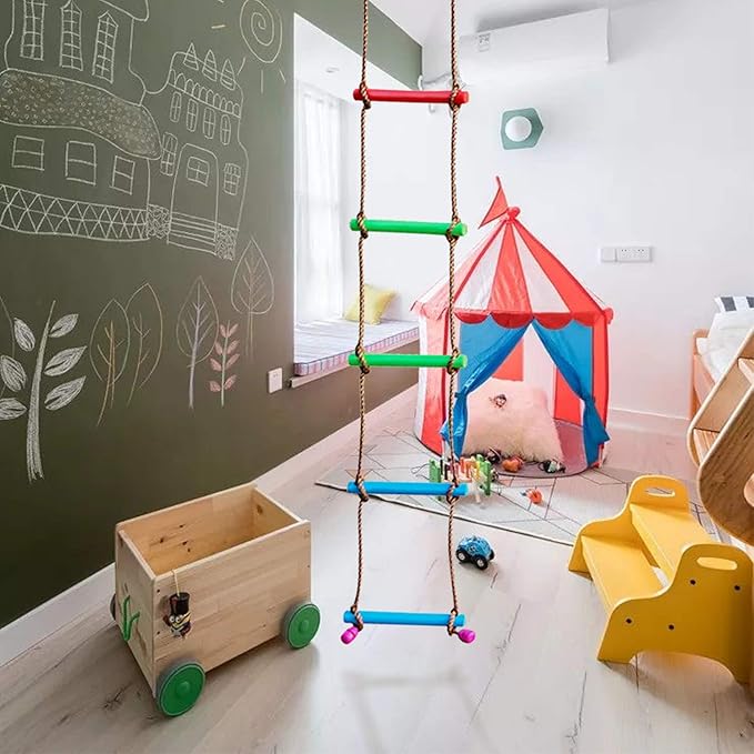 Crafted from durable polypropylene and certified safe by CPC standards, this ladder holds up to 220 lbs and is ideal for kids ages 3 to 12. Whether used indoors or outdoors, it easily attaches to swing sets, ninja slacklines, or backyard setups, making it a versatile and valuable addition to any play or therapy routine.